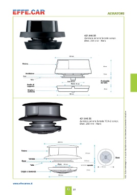 AERATORI 421.040.55 Aeratore ad aria forzata compl. Øest. 226 mm - Nero 421.040.56 N.B. Tutte le immagini e le quote riportate sono da intendersi puramente indicative Aeratore ad aria forzata TCX-2 compl. Øest. 260 mm - Nero www.effecarsnc.it D 20