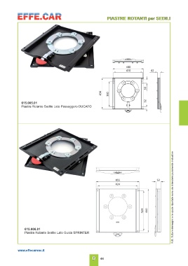 PIASTRE ROTANTI per SEDILI 615.005.01 Piastra Rotante Sedile Lato Passeggero DUCATO 615.006.01 N.B. Tutte le immagini e le quote riportate sono da intendersi puramente indicative Piastra Rotante Sedile Lato Guida SPRINTER www.effecarsnc.it D 44