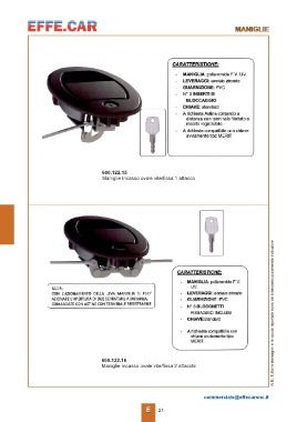 MANIGLIE 600.122.15 Maniglie Incasso ovale vite/fissa 1 attacco 600.122.16 N.B. Tutte le immagini e le quote riportate sono da intendersi puramente indicative Maniglie Incasso ovale vite/fissa 2 attacchi commerciale@effecarsnc.it E 21