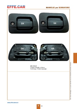 MANIGLIE per SERRATURE N.B. Tutte le immagini e le quote riportate sono da intendersi puramente indicative DX SX DX SX 600.105.20 Coppia maniglie c/chiave EuroCargo- Stralis impariglio www.effecarsnc.it E 22