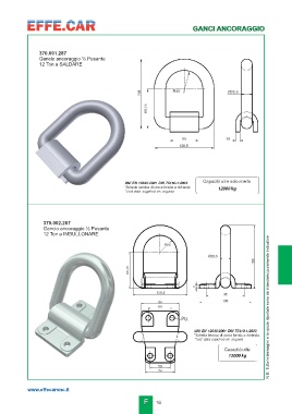 GANCI ANCORAGGIO 370.001.287 Gancio ancoraggio ½ Pesante 12 Ton a SALDARE 370.002.287 N.B. Tutte le immagini e le quote riportate sono da intendersi puramente indicative Gancio ancoraggio ½ Pesante 12 Ton a IMBULLONARE www.effecarsnc.it F 16