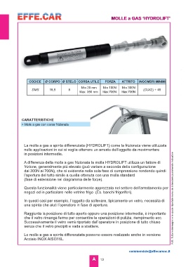 La molla a gas a spinta differenziata (HYDROLIFT) come la frizionata viene utilizzata N.B. Tutte le immagini e le quote riportate sono da intendersi puramente indicative